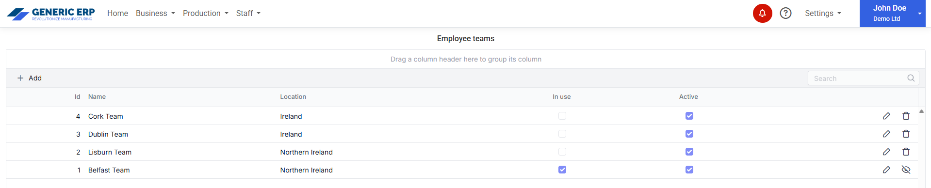 Teams are required for Time management at the Production and capturing working time at Employees section.